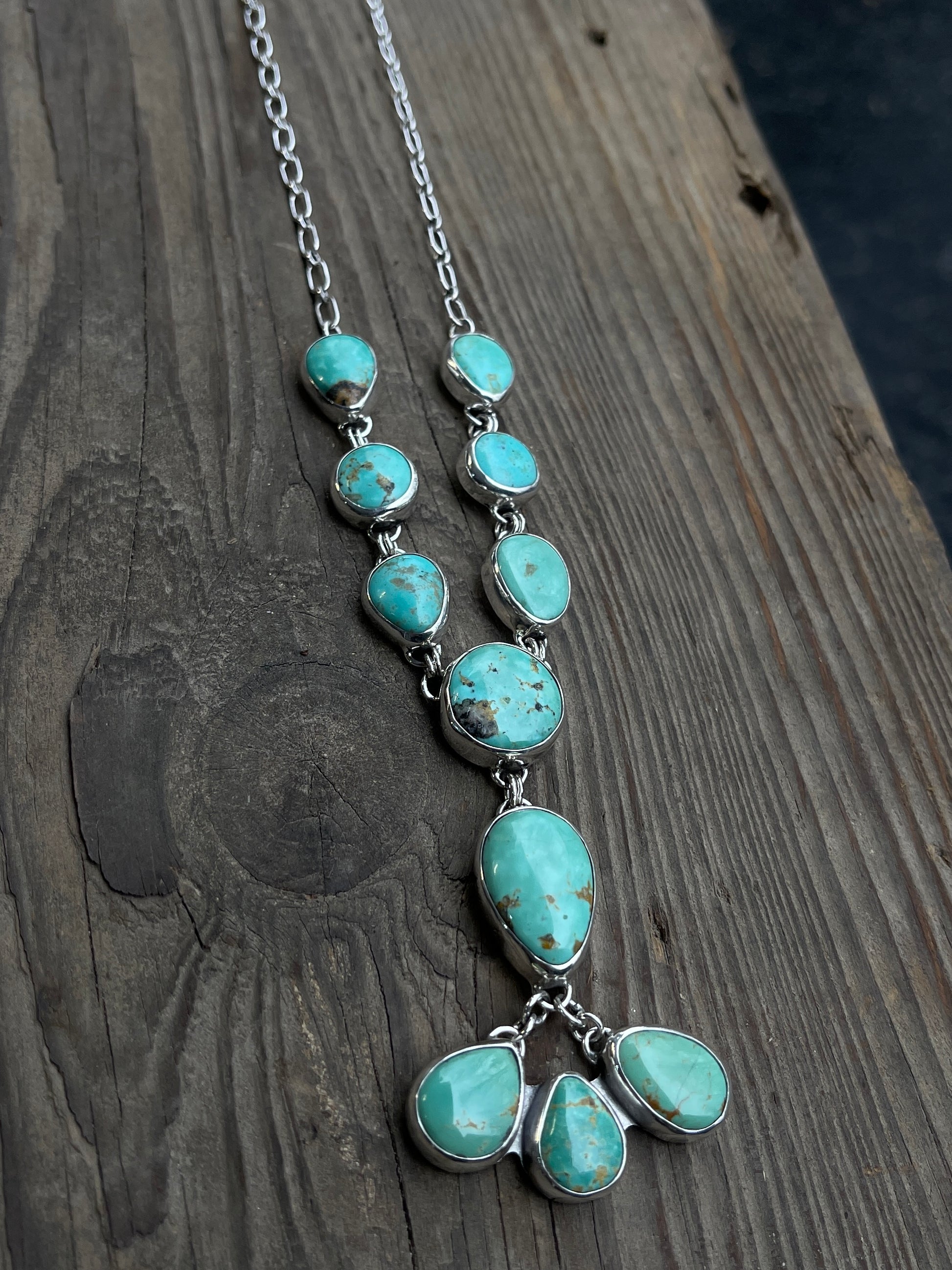 11 Sonoran Turquoise Stones Set in Sterling Silver | 21" Length