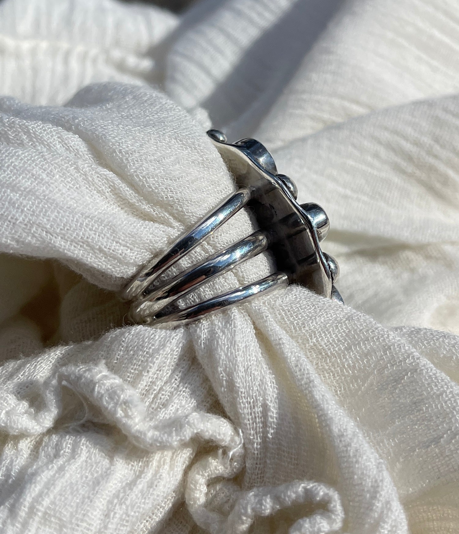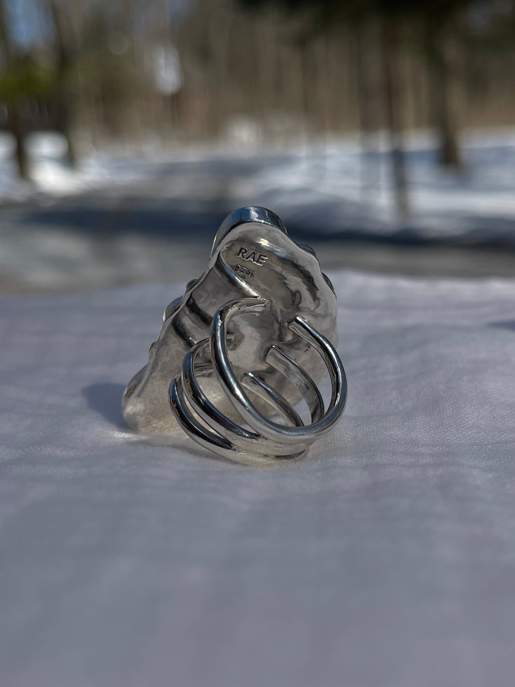 6 Larimar stones set on a split band ring