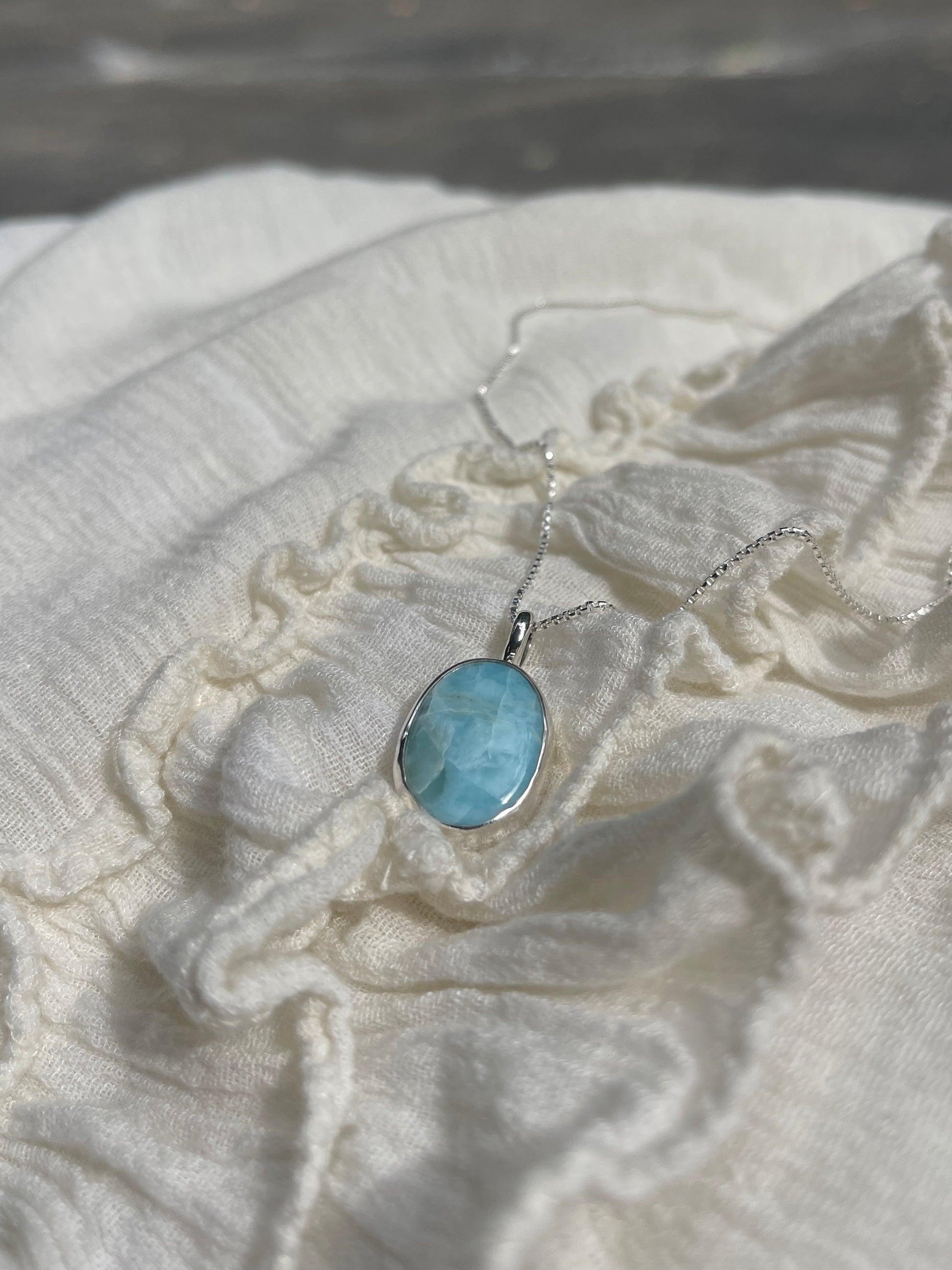Bright Larimar Stone Set on a 20" Sterling Chain